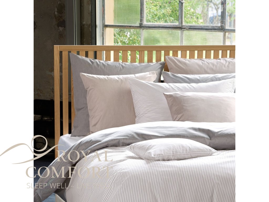 Povlečení Double Face je vyrobeno z vysoce kvalitní bavlny s extra dlouhými vlákny, která zajišťují jemnost, odolnost a dlouhou životnost. Typická fil-à-fil technika spočívá ve střídání bílé a barevné příze, nit po niti, čímž vzniká elegantní a jemně strukturovaný vzhled. Díky plátnové vazbě je látka mimořádně lehká – pouhých 108 g/m² – a nabízí příjemný pocit na dotek i nadčasový charakter.
