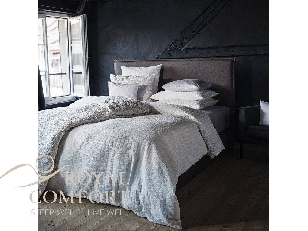 Povlečení Flow je vyrobeno z čisté bavlny a zaujme výrazným pruhovaným designem s typickou trojrozměrnou strukturou seersuckeru. Různé napětí osnovních nití dodává látce živý, příjemný omak a zajišťuje přirozenou vzdušnost. Jemný květinový vzor v bílé barvě působí svěže a nadčasově. Díky snadné údržbě a prakticky nežehlivému povrchu je ideální volbou pro každodenní komfort po celý rok.